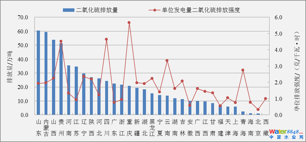 圖3-4 各地區(qū)電力、熱力生產(chǎn)和供應(yīng)業(yè)二氧化硫排放情況