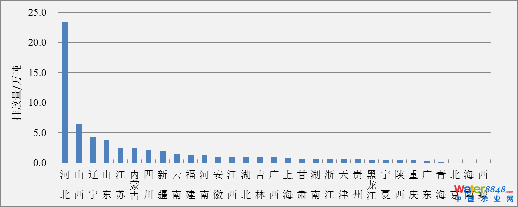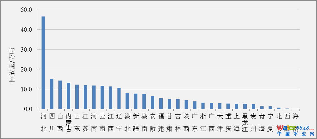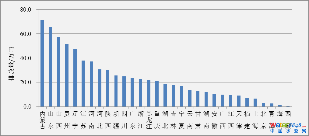 圖3-5 各地區(qū)電力、熱力生產(chǎn)和供應(yīng)業(yè)氮氧化物排放情況