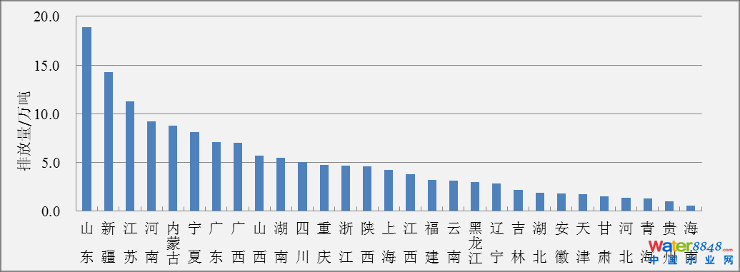 圖3-14 各地區(qū)非金屬礦物制品業(yè)氮氧化物排放情況