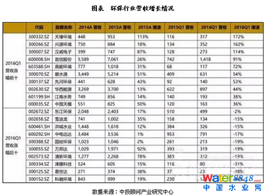 水務(wù)板塊行業(yè)發(fā)展較為平穩(wěn),2015年和2016年一季度營收增速為17.50%和19.45%;凈利潤增速為8.97%和11.41%。