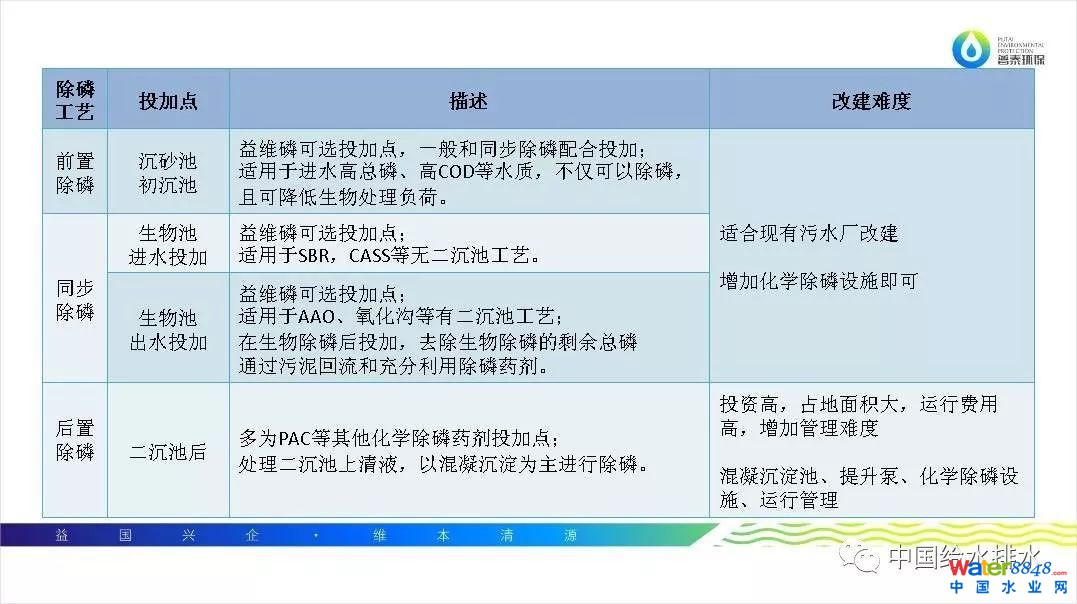 提標(biāo)改造對(duì)于污水廠來說需要做很多的工作。今天早上前面匯報(bào)幾位同仁講過MBBR工藝,這也是部分污水廠提標(biāo)改造需要做的。我之前了解全國很多污水處理廠都在使用MBBR,效果確實(shí)非常好,增加了水廠的生物脫氮除磷的效率。但對(duì)于提標(biāo)改造來講除磷一直是污水廠的共認(rèn)難題,除了生物除磷外仍需要增加化學(xué)除磷;瘜W(xué)除磷有沒有一個(gè)專業(yè)的除磷劑,可以滿足水廠不同的水質(zhì),不同的工藝需求呢?答案是“益維磷”。益維磷是發(fā)明專利產(chǎn)品,也是可以將發(fā)明專利轉(zhuǎn)化到污水處理過程當(dāng)中一個(gè)產(chǎn)品。益維磷分為不同的型號(hào),根據(jù)水廠的水質(zhì)、工藝等條件,結(jié)合污水廠遇到的實(shí)際問題,通過實(shí)驗(yàn)室實(shí)驗(yàn)來確定水廠適合哪個(gè)型號(hào)。