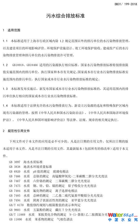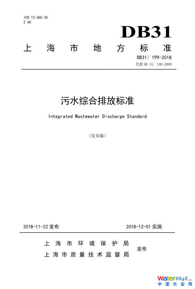 上海市污水綜合排放標準自2018年12月1日起實施!