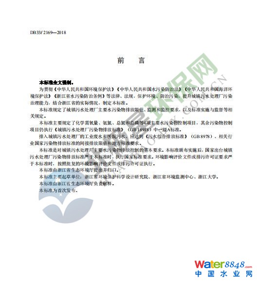 所屬頻道: 水處理  關(guān)鍵詞:城鎮(zhèn)污水處理廠 水污染物排放標(biāo)準(zhǔn) 浙江
