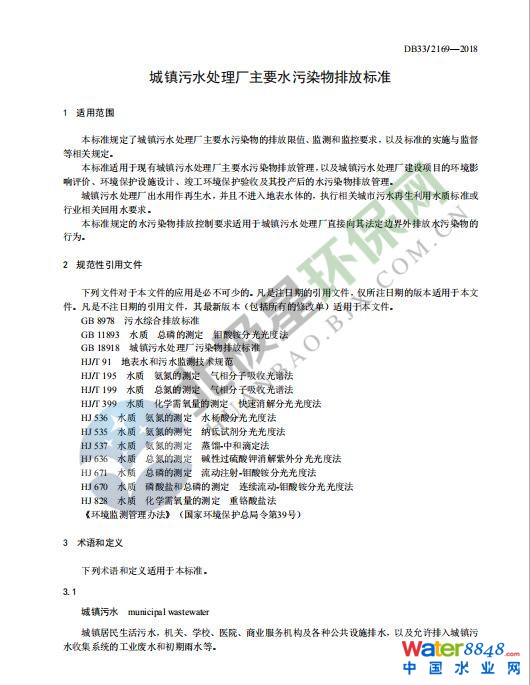 正式稿公布!浙江省《城鎮(zhèn)污水處理廠主要水污染物排放標(biāo)準(zhǔn)》將于明年1月1日起實(shí)施!
