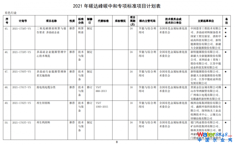 工信部2021年“雙碳”專項(xiàng)行業(yè)標(biāo)準(zhǔn)制修訂計(jì)劃