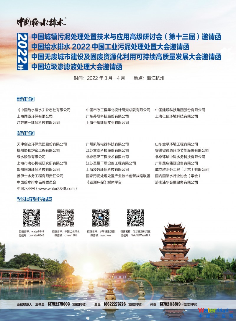 為推動我國工業(yè)綠色發(fā)展,進(jìn)一步促進(jìn)工業(yè)企業(yè)環(huán)境保護(hù)工作,貫徹落實(shí)新《環(huán)境保護(hù)法》、《水污染防治行動計(jì)劃》、《固體廢物污泥環(huán)境防治法》和《危險(xiǎn)廢物經(jīng)營許可管理辦法》等國務(wù)院文件精神,更好地為企業(yè)生產(chǎn)建設(shè)服務(wù),《中國給水排水》雜志社有限公司聯(lián)合蘇伊士水務(wù)工程有限責(zé)任公司、威立雅水務(wù)、中國市政工程華北設(shè)計(jì)研究總院有限公司、中國建設(shè)科技集團(tuán)股份有限公司、國際水協(xié)污泥專家委員會、天津創(chuàng)業(yè)環(huán)保集團(tuán)股份有限公司 單位,擬定于20223月—4月杭州市共同組織召開“2021中國工業(yè)污泥處理處置大會”, 以充分研討和推廣工業(yè)污泥處理處置新技術(shù)、新工藝與新裝備的應(yīng)用。望有關(guān)單位積極組織相關(guān)人員撰寫論文、參加會議。