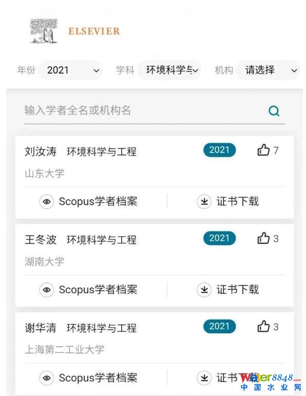 4月14日,全球性信息分析公司愛思唯爾(Elsevier)正式發(fā)布了2021“中國高被引學者”榜單。2021愛思唯爾“中國高被引學者”榜單以全球權威的引文與索引數(shù)據(jù)庫——Scopus作為中國學者科研成果的統(tǒng)計來源,采用軟科設計的遴選方法,最終得到4701名各學科最具全球影響力的中國學者。其中環(huán)境科學與工程學科共有125位學者上榜。
