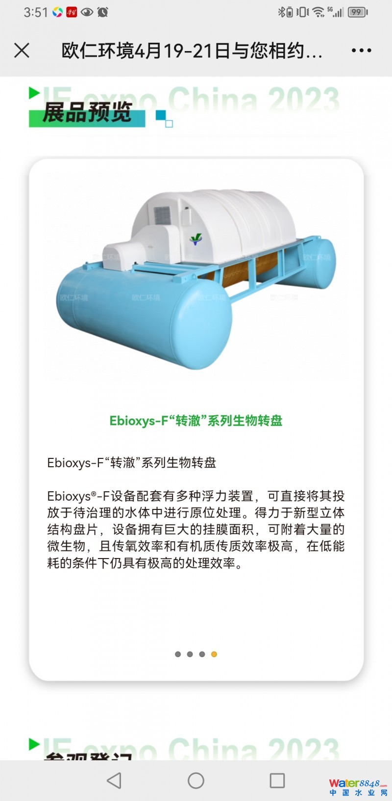 歐仁(日照)環(huán)保裝備有限公司 段日昭:利用盤片上的微生物攝取污水中的有機(jī)物作為營養(yǎng),使污水得到凈化,噸水工藝運(yùn)行費(fèi)用可低至0.2元,較傳統(tǒng)工藝減少55%。