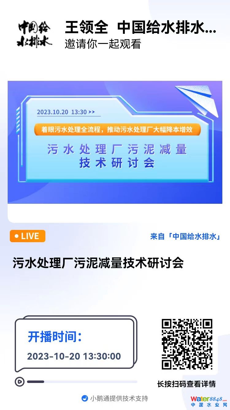 核心提示:污水處理廠污泥減量技術(shù)研討會 直播時間:2023年10月20日13:30-17:30 2023-10-20 13:30:00 開始
