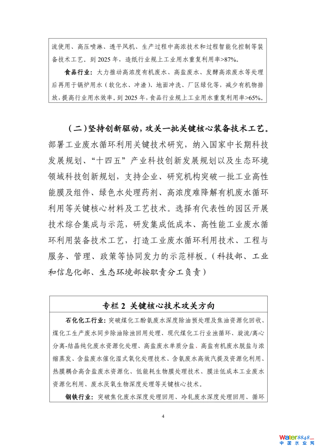 工業(yè)和信息化部 國(guó)家發(fā)展改革委 科技部 生態(tài)環(huán)境部 住房城鄉(xiāng)建設(shè)部 水利部關(guān)于印發(fā)工業(yè)廢水循環(huán)利用實(shí)施方案的通知