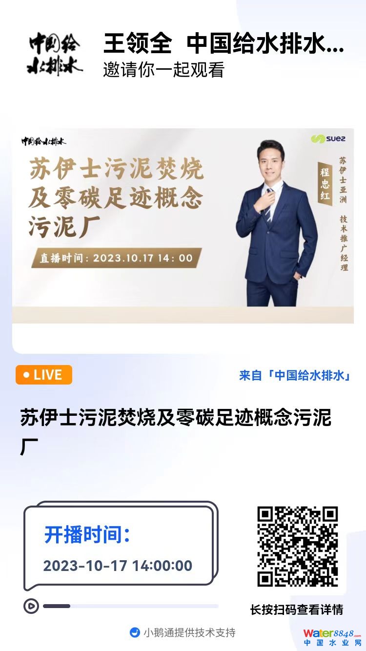 今年,蘇伊士和中國(guó)給水排水雜志社共同策劃組織了在中國(guó)給水排水直播平臺(tái)的系列講座。本次直播是系列講座之一。