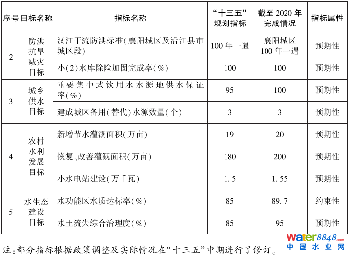 表3-1 襄陽市水安全保障“十四五”規(guī)劃目標指標表
