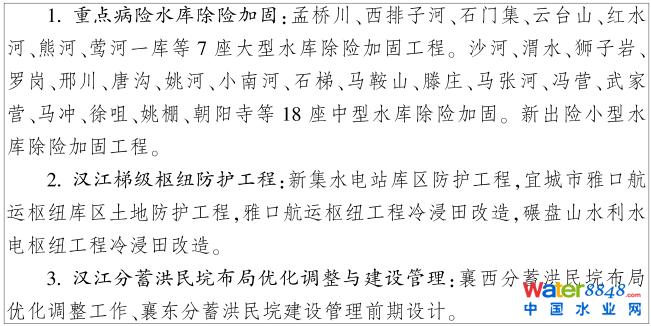 堅持人水和諧、可持續(xù)發(fā)展原則,統籌考慮“蓄與泄、分與排”的關系,推進重點病險水庫除險加固、漢江梯級樞紐防護以及漢江分蓄洪民垸布局優(yōu)化調整和建設管理等工程,消除水利工程安全隱患,恢復和增強河庫調控能力,提高洪水管理能力。