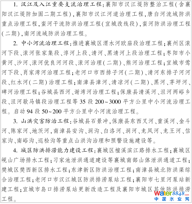 “一山”——西部山地。緊抓南水北調中線二期機遇,依托引江補漢工程,優(yōu)化全市水資源配置格局,退還河流生態(tài)用水,推動襄西綠色發(fā)展;加快推進潭口二庫新建、金盤洞水庫改擴建等重點水源工程建設,繼續(xù)實施農村飲水安全工程,確保山區(qū)水質水量安全可靠,提質增效;全面提升北河、南河、蠻河、沮河及漳河上游防洪能力,重點加強山洪災害防治及群測群防體系建設。