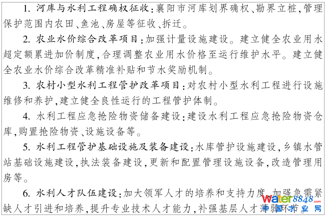 表6-1 襄陽市水安全保障“十四五”規(guī)劃重點項目投資表