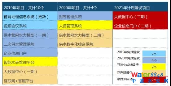 2018年規(guī)劃完以后,福州水務形成了數(shù)字水務項目清單,供水方面計劃實施16個項目,其中已經(jīng)在實施的有14個,2019年完成驗收2個,2020年完成驗收4個,還在開發(fā)建設的8個。