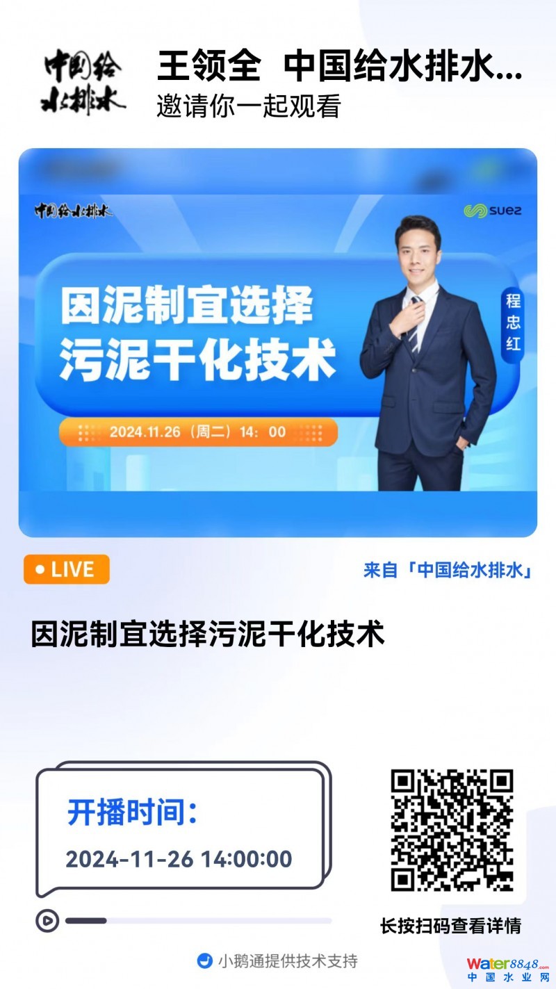 因泥制宜選擇污泥干化技術 直播時間:2024年11月26日(周二)14:00 2024-11-26 14:00:00 開始