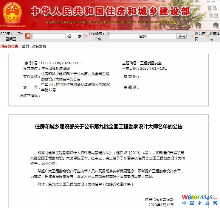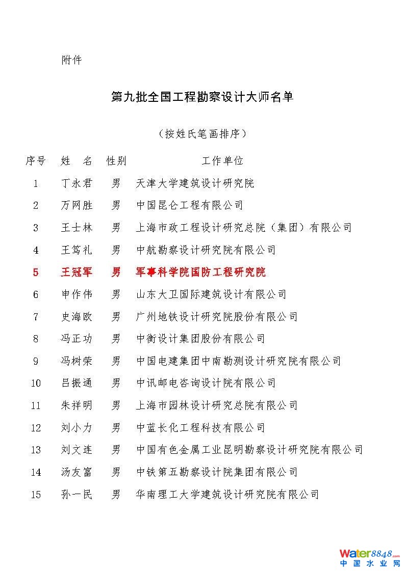 喜訊,水行業(yè)再添4位全國工程勘察設(shè)計大師!