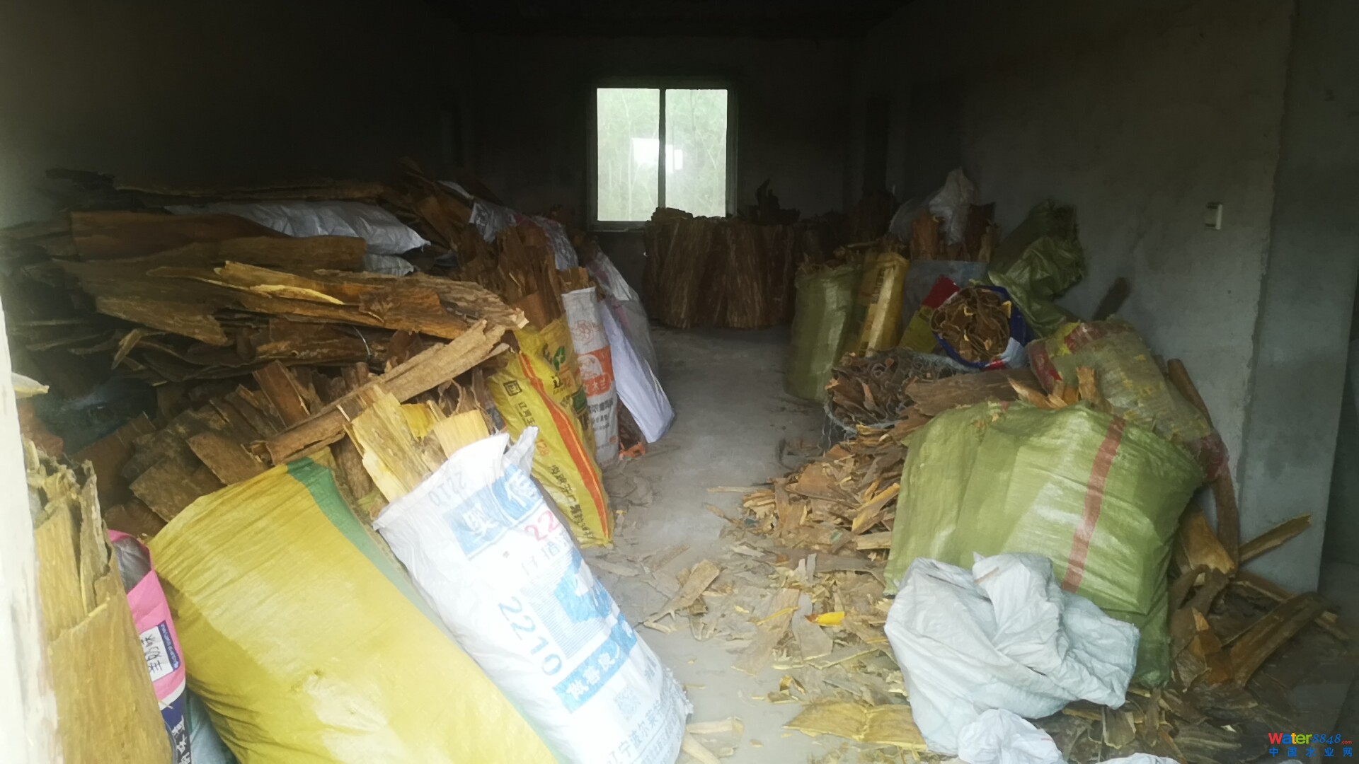 圖為嫌疑人在庫房內(nèi)藏匿的黃菠蘿樹皮(庫房為嫌疑人租用來專門屯放這些贓物)